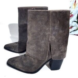 Vince Camuto Alolison Leather or Suede Cuffed Boot Foldover shaft boots are a big fashion DO this season, and we’re loving the Alolison’s take on the sultry silhouette. The mid-calf, cuffed design features split-seam vents and a full-length side zipper. Styled with a sharp snip toe, the must-have boot sits on a walkable block heel.