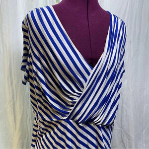 Vince Camuto Womens Blue Striped V-Neck Top Shirt Size 1x