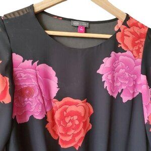 Vince Camuto Womens Floral Print Long Sleeve Flowy Blouse Size S Black, Pink, Or
