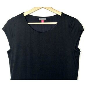 Vince Camuto Women Black Cap Sleeve Stretch Peplum Hem Pullover Top Size S