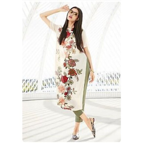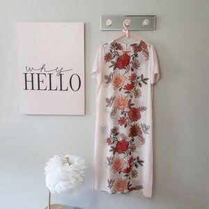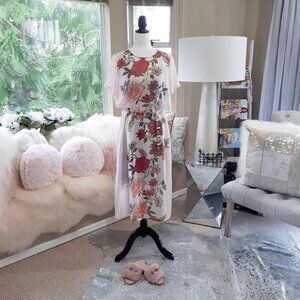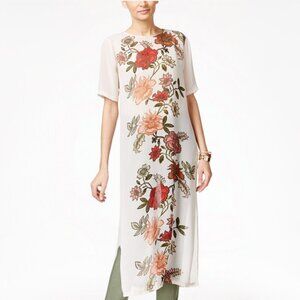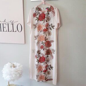Vince Camuto soft blush pink floral flowy long tunic top, S