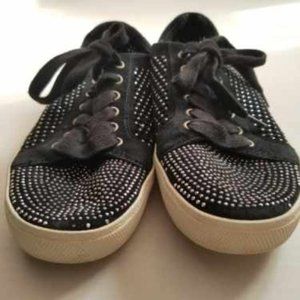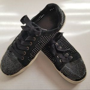 Vince Camuto perforated black suede leather silver studded women’s sneaker size 7