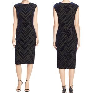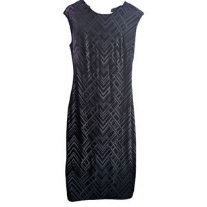 Vince Camuto Burnout Velvet Art Deco Deep Purple Sheath Midi Dress Size 10