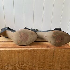 Beautiful Vince Camuto leather 3” heels with gold studs front and centre. With double logo buckled strap around ankle and back zippered entrance, you will have great support in these comfortable heels. **Please note the photos, minor heel scuff.** These heels will be a stunning addition to your wardrobe.