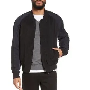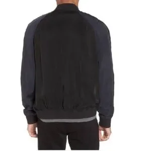 Colorblock construction adds a fun twist to the classic bomber jacket.