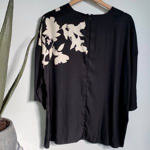 A satin twill essential in an easy t-shirt silhouette. The wear-everywhere style features a crew neck, drop shoulders, elbow-length sleeves and a floral print.