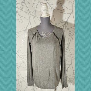 Vince Gray Jersey Knit Satin Contrast Long Sleeve Tee
