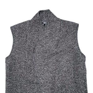 Vince Gray Mélange Mixed Media Open Front Long Vest Cardigan Sweater