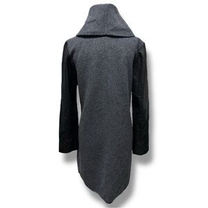 Vince Gray and Black Wool and Leather Asymmetrical Zip Coat Shawl Collar