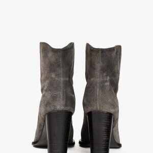 Vince Grey Nubuck Leather Block Heel Point Toe Boots