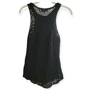 Vince Hand-Knit Loose-Weave Black Cotton Tank Top Size S