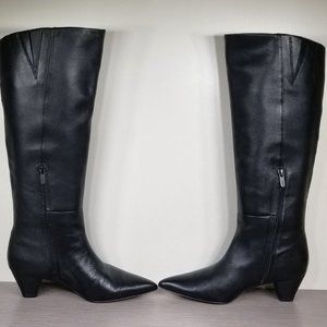 Vince Knee High Kitten Heel Boots, Black Leather, Womens Size 6.5 US / 36.5