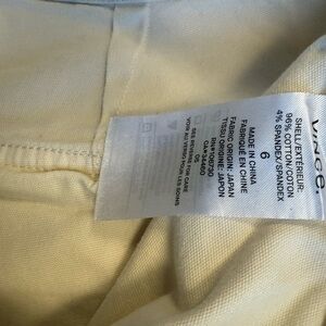 Elegant light beige capris by Vince. Features practical front pockets and a sleek button closure. Ideal for everyday style.