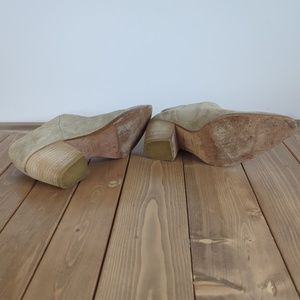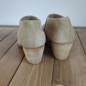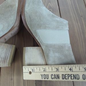Vince Light Tan Beige Suede Slip on Ankle Boots with Stacked Heel