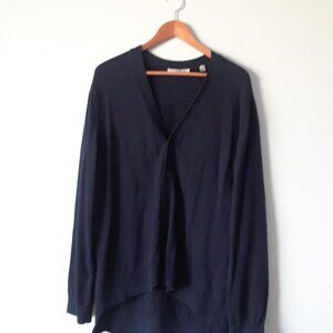 Lovely navy blue Vince cardigan with a ribbed back and a hi-lo design. Super soft and comfortable.