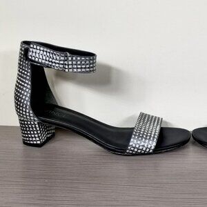 Vince Rita Ankle Strap Sandal, Black & White Metallic Leather, Womens Size 6.5 M