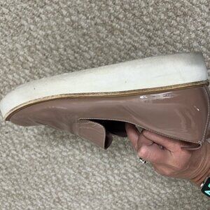 Vince Sanders Neutral Taupe Patent Leather Platform Slip On Loafers Size 10