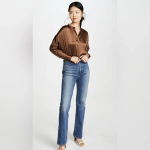 Vince Satin Dot Print Popover Button Up Woodbine Blouse