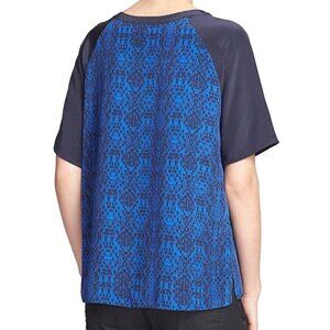 Vince Silk Blouse Women's Cobalt Blue Print Contrast Short Sleeve