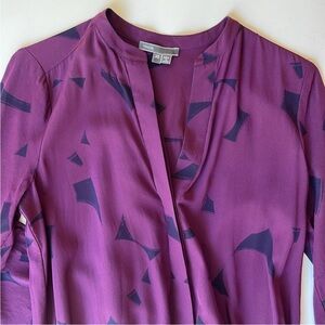 Vince Silk Plum Geometric Printed Tie Front Maxi Dress