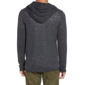 Lightweight slubbed linen furthers the casual, easy-to-wear comfort of a pullover styled with a drawstring hood and unfinished hems.