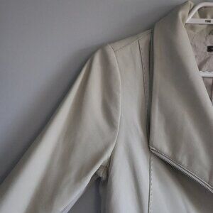 Vince Sz M Classic Cream Goat Leather Moto Asymmetrical Full Zip Luxury Jacket