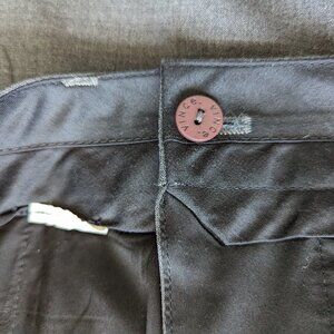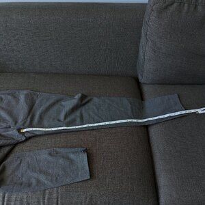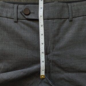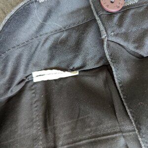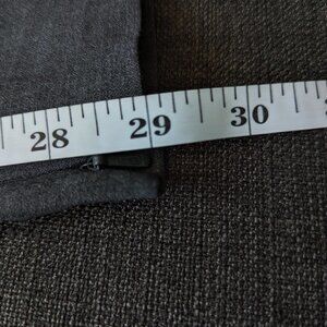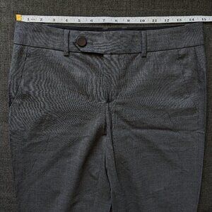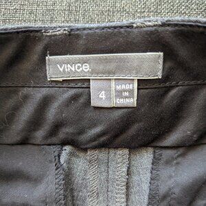These beautiful lightwight trouser pants from Vince are in excellent used condition. The materials tag has been removed but I'm almost 100% sure that they are a lightweight wool blend with leather accents on the pockets and button. They are not itchy. No noted flaws.