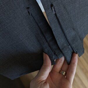 Featuring a tab waist with leather button accent, side pockets and ankle zips, they're a great office staple with those little details that make them feel a little special.