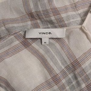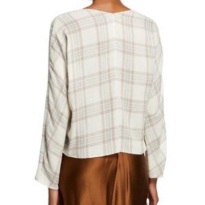 Vince Textured Plaid Crossover Blouse in White - Size XL - NWT