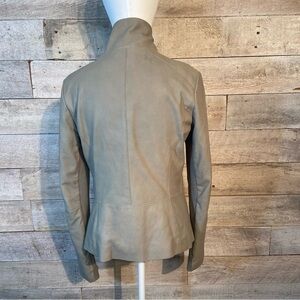 Vince. Women’s beige asymmetrical zip up leather moto jacket in size small