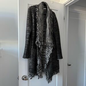 Vince black & white long wool tweed fringe sweater jacket - size Large (L)