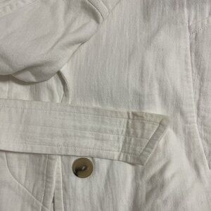100 % cotton. Pit-to-pit is about 19'', length is about 25''.