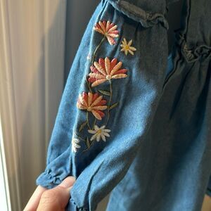 Never worn Vince Camuto denim dress with floral design on arms