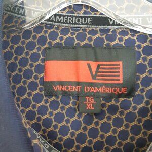 Vincent DAmerique Mens XL Cotton Polo Shirt Navy Blue Mixed Print Breathable