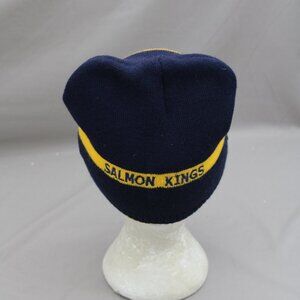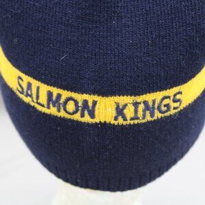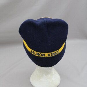 Up for sale is a vintage Victoria Salmon Kings toque. It has a blue base colour with a yellow stripe in the middle. The front of the toque has the Salmon Kings logo crested on. The back of the toque has Salmon Kings woven into the yellow stripe. What a great toque do not miss out on it.
