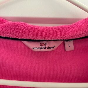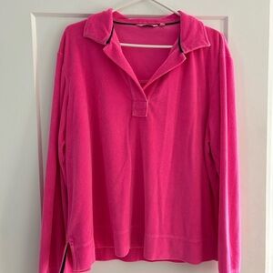 Bright pink, cozy terry-like fabric shirt. Long sleeves with a classic collar.
