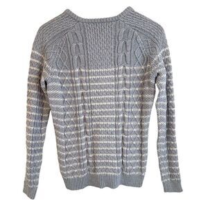 Vineyard Vines Grey and White Cotton Striped Cable Knit Crewneck Sweater