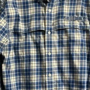 This shirt combines classic style with functional performance, making it ideal for fishing, outdoor activities, or everyday wear. In excellent condition with minimal to no signs of wear.
