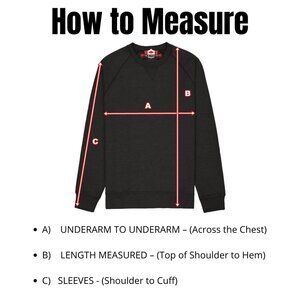 • Measurements: A) Chest 22 (B) Length 30 (C) Sleeve 28