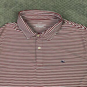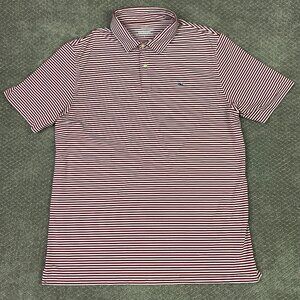 Vineyard Vines Performance Polo Shirt Men's Large Red White Stripes Golf Stretch