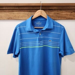 Vineyard Vines Polo Shirt Mens Small Blue Performance Striped Golf Whale
