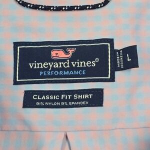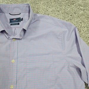 Vineyard Vines Shirt Mens Large Pink Blue Gingham Plaid Performance Classic Fit