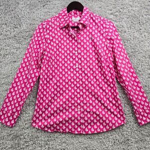 Vineyard Vines Shirt Womens 2 Pink Button Up Long Sleeve Sail Boats Nautical