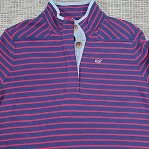 Vineyard Vines Sweater Womens Medium Long Sleeve 1/4 Button Striped Red Blue