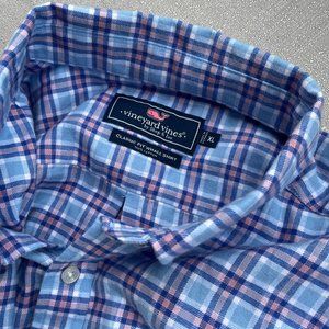 Vineyard Vines Whale Pink Blue Plaid Classic Fit Shirt Button Down Shirt Size XL