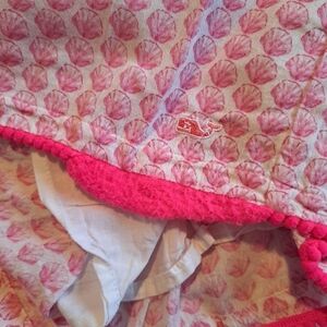 Vineyard Vines girls size Medium or 10-12 shell designed skirt, elastic waist, lined skirt, pom poms on the bottom fuzzed out, easily removed from bottom of skirt