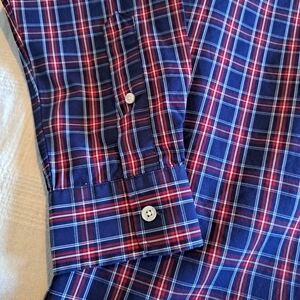 Vineyard Vines men's size Medium slim fit Murray shirt, plaid button down shirt, blue, red and white plaid, EUC
