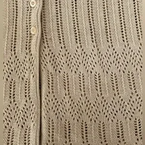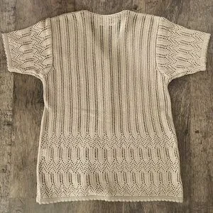 Cute short sleeve knit button up by Vino Rouge in excellent condition. Has the faintest pink spot to the right (see last photo) but it is scarcely noticeable.
