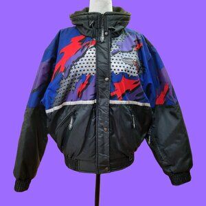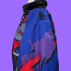 Vintag 90s Racing Bomber Jacket Vortex Insulated Womens M Black Blue Purple Red