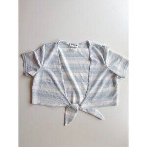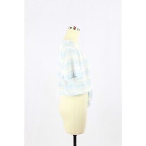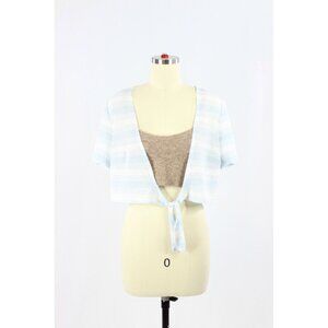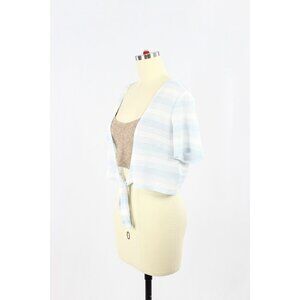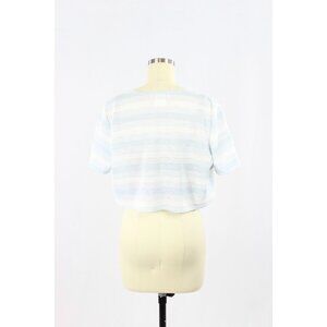 Vintage 00's DINO PLUS White Blue Striped Knit Cropped Cardigan Top, Size 13/14